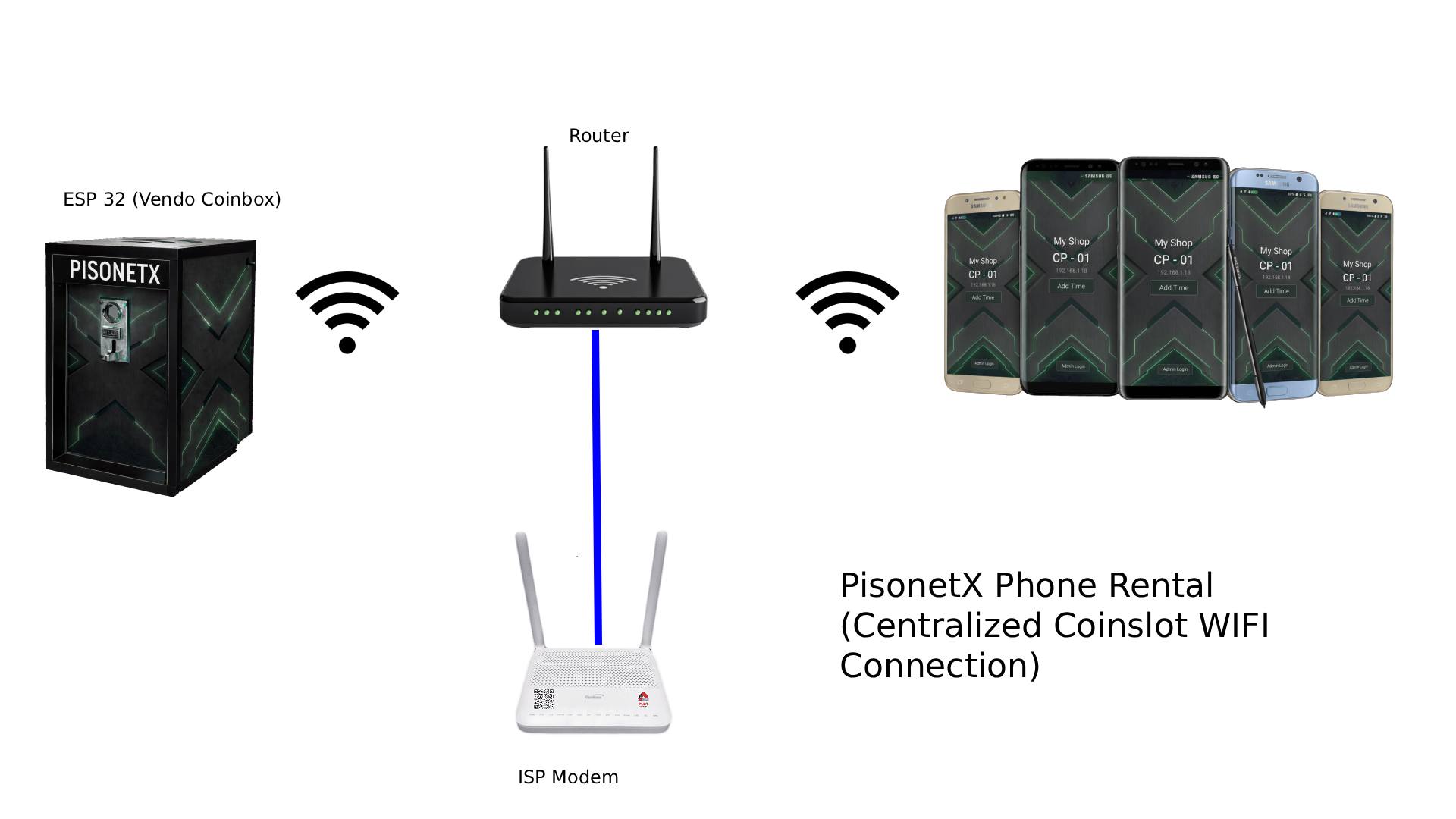 How it works: Coinslot sends signal to ESP32 → ESP32 sends command via WiFi router → Rental phone receives and adds time automatically.